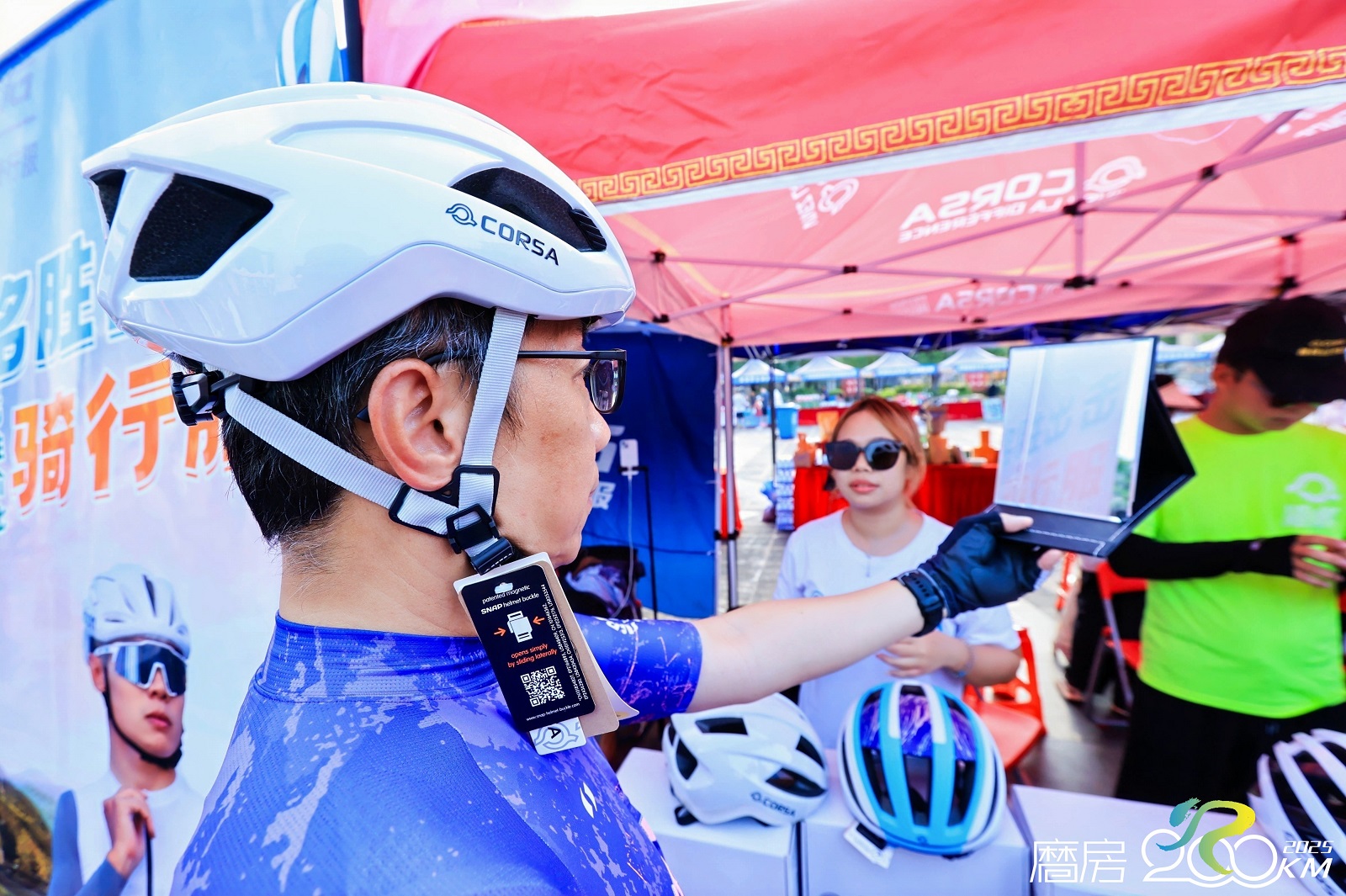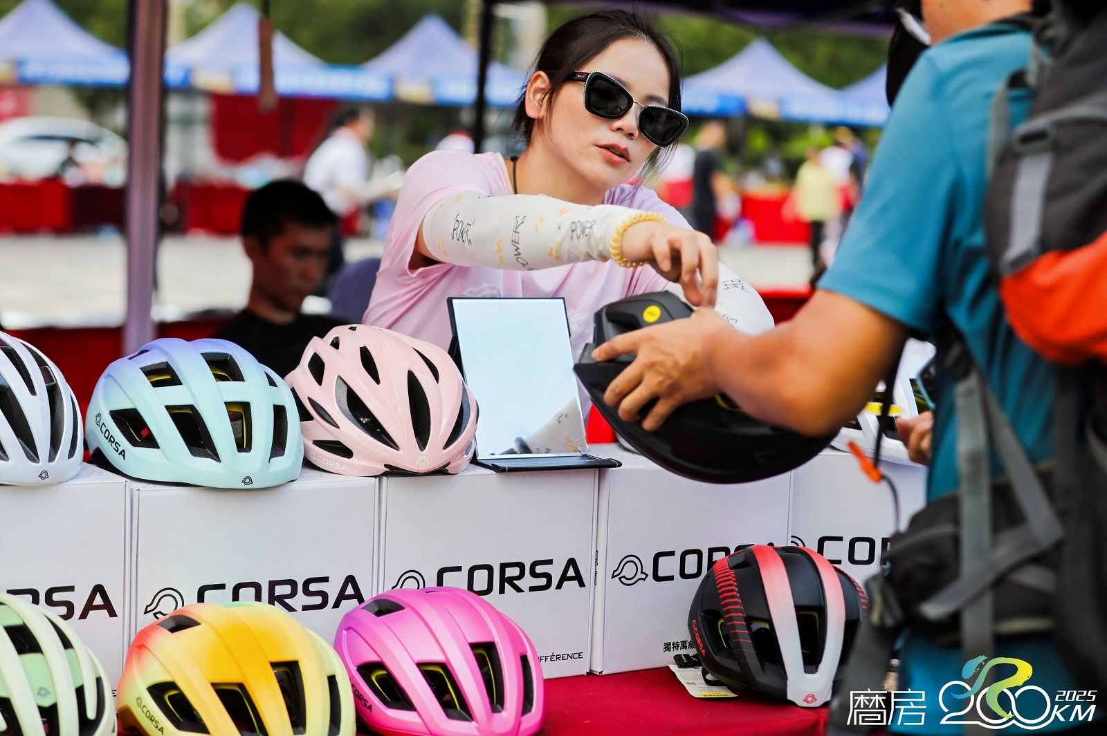 在本次骑行活动的补给休息区,CORSA酷飒展位无疑成为了焦点之一。众多骑士们纷纷被展位上陈列的2025新款骑行头盔吸引,不少人驻足停留,亲身体验这款兼具安全性能与时尚设计的装备。