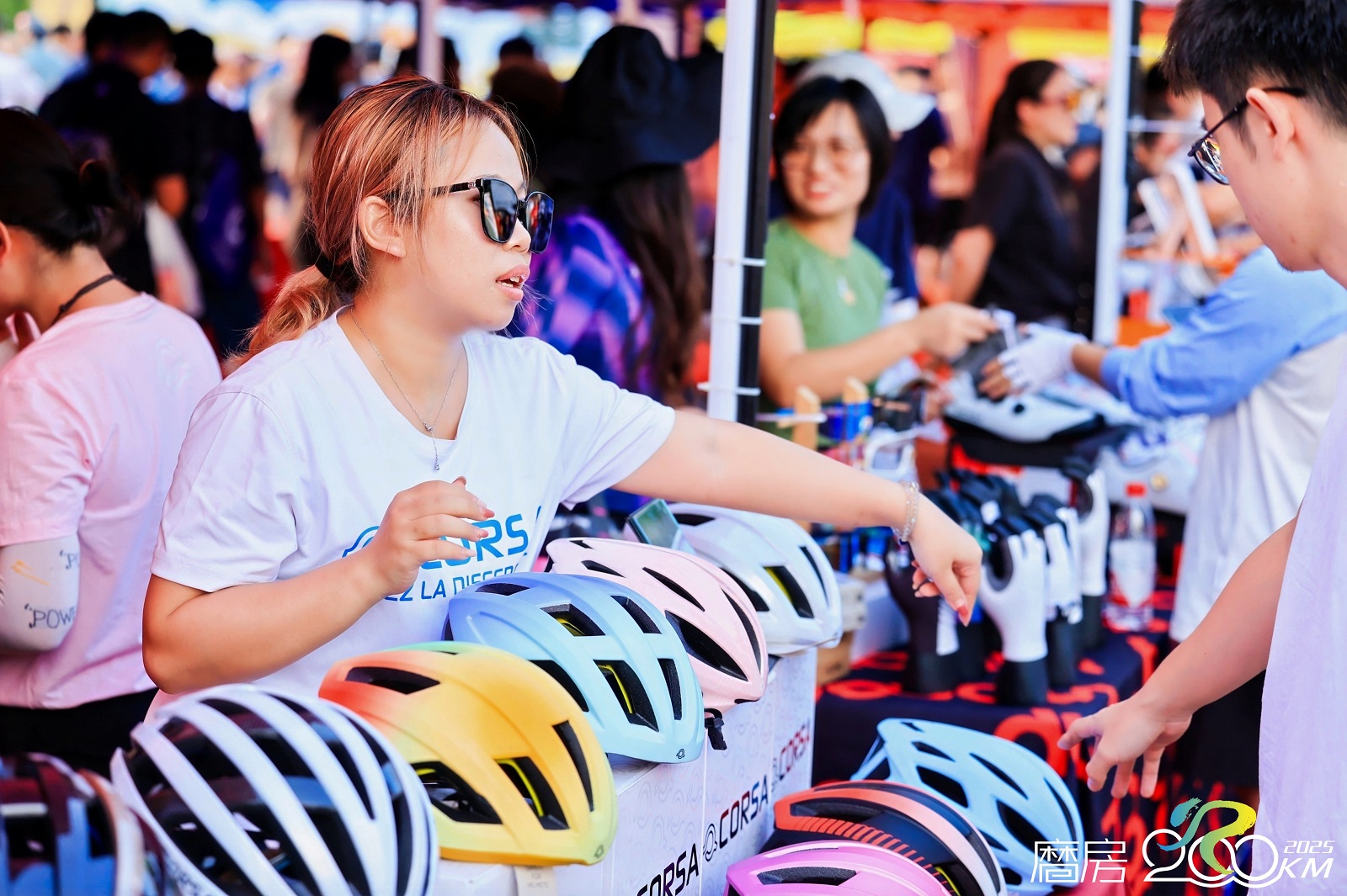 在本次骑行活动的补给休息区,CORSA酷飒展位无疑成为了焦点之一。众多骑士们纷纷被展位上陈列的2025新款骑行头盔吸引,不少人驻足停留,亲身体验这款兼具安全性能与时尚设计的装备。